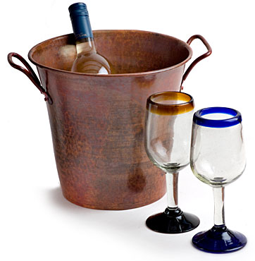 Hammered Copper is timeless. Warm and appealing copper wine buckets and bread baskets complement and enhance any setting.